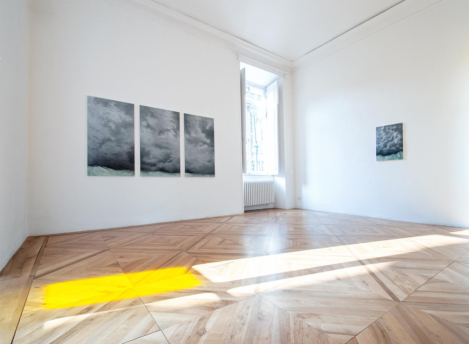 «I looked at the gallery floor plan for weeks. I studied it. One day I noticed that it indicated north; so I oriented it towards that cardinal point and tried to align myself with the spaces that would host the exhibition. I thought about the other cardinal points, about a window facing south-west, the warmest point. I saw the earth, with its inclination, rotating around the sun and giving life to the seasons and shadows. I imagined the visitor, once back in their daily life, orienting themselves towards the same point.» [...]